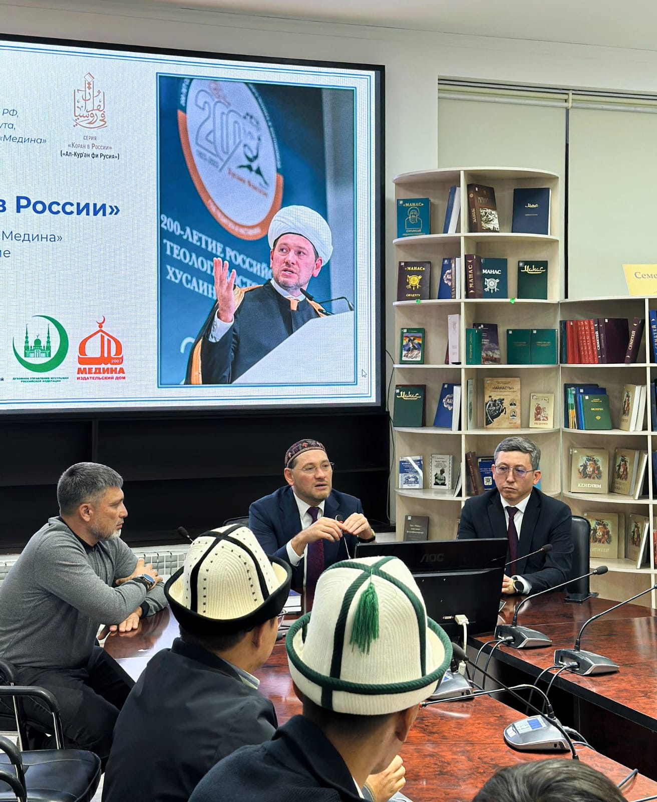 Доктор Дамир Мухетдинов рассказал аудитории про роль, место и перспективы теологии и теологического образования на постсоветском пространстве. Как ректор Московского исламского института он поделился практическим опытом развития этой области знания в России. Кыргызские студенты и профессора также узнали о последних достижениях российской коранистики и исламоведения.