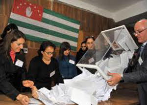 За президентское кресло борются три кандидата: премьер-министр Сергей Шамба, вице-президент Александр Анкваб и оппозиционный политик Рауль Хаджимба.