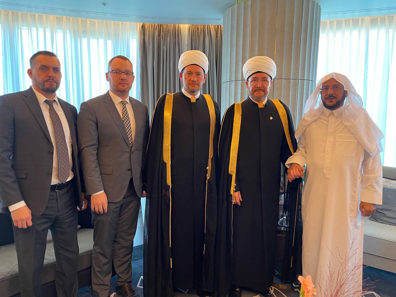 Отдельно муфтий Гайнутдин высказал слова благодарности за поддержку и сотрудничество, в том числе в адрес Его Величества короля Салмана бен Абдель Азиза за создание условий для паломников и знаки внимания в адрес российских мусульман. Особо была отмечена значимость подписанного 10 ноября 2019 года меморандума о сотрудничестве между ДУМ РФ и министерством по делам ислама, призыва и наставления Саудовской Аравии.