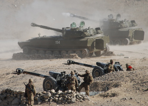 Учения проходят при участии военной авиации, бронированной военной техники и другого вооружения.