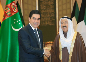 Туркмено-кувейтские переговоры в верхах открывают новый этап в сотрудничестве на двустороннем уровне, а также в формате ООН и других международных структур. Об этом заявили Президент Гурбангулы Бердымухамедов и Эмир Сабах Аль-Ахмад Аль-Джабер Аль-Сабах во время состоявшейся 13 марта в Эль-Кувейте встречи, сообщает государственное информагентство Туркменистана. 13 марта начался официальный визит президента Туркменистана в Кувейт и Объединенные Арабские Эмираты. Одной из центральных тем на переговорах в Эль-Кувейте стала торгово-экономическая сфера. Стороны констатировали наличие огромных возможностей для наращивания связей как в аспекте решения национальных задач, так и в контексте тенденций региональной и глобальной экономики, сообщает туркменское информагентство ТДХ. Как отмечалось на переговорах, основными перспективными направлениями долгосрочного сотрудничества между странами являются ТЭК, торговля, инвестиции, транспорт и связь, химическая промышленность, текстильная индустрия и сельское хозяйство, здравоохранение и высокие технологии. В ходе переговоров подписаны Меморандум о взаимопонимании между Государственным концерном «Туркменгаз» и компанией «Kuwait Petroleum Corporation»; Соглашение между Правительством Туркменистана и Правительством Государства Кувейт в области искусства и культуры. Стороны также приняли совместный документ об оказании технической поддержки между Правительством Туркменистана и Кувейтским Фондом Арабского экономического развития. Также сообщается, что во время встречи с премьер-министром Джабером Аль-Мубарак Аль-Хамад Аль-Сабахом Бердымухамедов пригласил Кувейт принять участие в модернизации туркменского ТЭК. Дипломатические отношения между Туркменистаном и Кувейтом были установлены в 1995 году. После Кувейта президент Туркменистана продолжит свой визит в ближневосточные страны посетив ОАЭ, сообщила туркменская пресса.