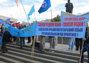 Вчера, 18 октября, на центральной площади Симферополя входящие в Крымскотатарский народный фронт (КТНФ) организации провели «Второе чрезвычайное собрание крымских татар», посвященное 91 годовщине со дня образования Крымской автономной социалистической республики. По приблизительным оценкам, участие в мероприятии приняло более 400 человек. К собравшимся обратились, председатель исполкома общественной организации «Милли Фирка», заместитель председателя Совета представителей крымскотатарского народа при Президенте Украины Васви Абдураимов, глава благотворительного фонда «Ватандаш-Соотечественник» Рустем Халилов, президент Международного фонда исследований и поддержки коренных народов Крыма Надир Бекиров, председатель исламской общины «Эрен Эвлия» из ялтинского поселка Кореиз, ветеран Национального движения крымских татар Кемал Куку и целый ряд других крымскотатарских активистов. Почти все выступавшие говорили о необходимости восстановления крымской автономии как «государственности коренного народа», в которой «в полном объеме должны обеспечиваться права всех ее жителей независимо от их национальности», как это «было в Крымской АССР, упраздненной в 1945 году после насильственной депортации крымских татар 18 мая 1944 года». В итоговую резолюцию собрания вошли, среди прочего, следующие важные требования: «незамедлительно выработать и принять новую Конституцию Украины, как федеративного, многонационального и многоконфессионального демократического государства, учитывающего интересы всех народов, наций и этносов, проживающих на его территории»; «принять Закон Украины «О реабилитации репрессированного крымскотатарского народа» и восстановить права крымскотатарского народа, утраченные в результате депортации 1944 года»; «совместно с Российской Федерацией, и государствами Центральной Азии разработать и принять межгосударственную программу возвращения и обустройства в Крыму всего крымскотатарского народа». Как заявил этой связи лидер «Милли Фирка» Васви Абдураимов, «нужно, чтобы мы все вместе построили в Крыму общий добротный дом, в котором будет удобно всем его жителям. Но если украинская власть не решит вопрос о восстановлении прав и реабилитации репрессированного крымско-татарского народа, нам вынужденно придется решать его не в Украине, хотя нам очень не хочется, чтобы дело дошло именно до этого. Для нас, крымских татар, Украина, Россия, Белоруссия со всеми проживающими в них национальностями также дороги, как и Великий Тюркский Эль от Татарского пролива до озера Балатон». Собственный корреспондент портала «Ислам в СНГ» Ринат Абдуллаев