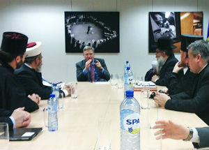 Председатель Духовного управления мусульман Украины Ахмед Тамим в составе делегации Всtукраинского совета церквей посетил Брюссель и встретился с Европейским Комиссаром по вопросам расширения и политики добрососедства Штефаном Фюле. В ходе встречи главы украинских конфессий отметили важность моральных принципов, необходимых не только для развития украинского общества, но и всего европейского содружества. Штефан Фюле отметил уникальность украинского опыта межрелигиозного согласия, который включает в себя не только мирное сосуществование представителей разных религий, но и являет собой пример успешного межконфессионального сотрудничества. По словам еврокомиссара, этот положительный опыт, который развивает религиозное сообщество Украины, важен не только для Европы, но и для всего глобализированного мира, который охватывает представителей разных национальностей. Во время беседы обе стороны согласились с необходимостью совместного поиска ответов на вопросы, связанные с современными общественными проблемами. От украинской делегации во время встречи выступил и Ахмед Тамим. Он отметил, что Восточная Европа отличается от западной и Украина как многонациональное и многоконфессиональное государство демонстрирует пример мирного сосуществования и интеграции народов восточной культуры. «И мы как мусульмане, работаем на сохранение человеческой ценности и противодействуем экстремизму и крайностям» – подчеркнул муфтий. Он также сказал, что Евросоюзу следует учитывать особенности украинского государства, поскольку не все европейские законы приемлемы для Украины. Как пример неприемлемых для Украины европейских норм Тамим назвал возможность пропаганды гомосексуализма. В завершение встречи Фюле выразил удовлетворение результатами диалога. Участники встречи наметили шаги для дальнейшего сотрудничества: как в Европейском Союзе, так и в Украине. Визит делегации Всеукраинского Совета Церквей и религиозных организаций в Брюссель завершился официальным приемом с участием должностных лиц ЕС, Представителя Украины при Европейском Союзе, депутата Европарламента и главы делегации в комитете парламентского сотрудничества Украина-ЕС, общественных институтов и украинской диаспоры. Ислам в СНГ