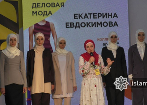 Каждый комплект одеяний из продемонстрированной на подиуме коллекции деловой одежды для мусульманок «Ev-а» задуман ею и воплощен в строгом соответствии с требованиями шариата Екатерина Евдокимова — украинская мусульманка, модельер, автор разработок одежды (бренд Katrin Kym) — стала одним из призеров престижного отечественного конкурса молодых дизайнеров «New Fashion Zone-2017». Авторитетное жюри, в составе которого ключевые личности индустрии моды, отдали представленной Екатериной коллекции второе место в номинации «Деловая мода». Заметим, что в этом году на конкурс было подано 250 заявок, к участию допустили 70, а в финале за звание лучших в разных номинациях боролись 30 дизайнеров. Коллекции оценивались по таким критериям, как оригинальность идеи, стилистика образа, выбор ткани, качество обработки, потенциальная востребованность fashion-продукта, соответствие запросам времени на рынках Украины и мира, цельность коллекции. Также каждый дизайнер «защищал» свою коллекцию, отвечая на вопросы членов жюри. Что же касается Екатерины Евдокимовой, то созданная ею торговая марка Katrin Kym — первый украинский бренд современной мусульманской одежды, сочетающей традиции Востока и ритм современного города. Каждый комплект одеяний из продемонстрированной на подиуме коллекции деловой одежды для мусульманок «Ev-а» задуман ею и воплощен в строгом соответствии с требованиями шариата. Серебряный призер конкурса, кроме морального удовлетворения и признания в мире моды, получила и вполне материальные призы: один из партнеров мероприятия, производитель тканей, предоставил ей 30-процентную скидку на приобретение его продукции, один из крупнейших столичных торговых центров предложил 25% скидки на аренду торговых площадей, а ТЦ «Променада», где, собственно, и проводился финал конкурса, вообще не будет брать плату за аренду точки реализации в течение двух месяцев! Не менее приятно, что один из модных бьюти-салонов Киева готов обслуживать Екатерину бесплатно. Заметим также, что второе место коллекции мусульманской деловой одежды для женщин стоит любого гран-при, ведь адресная аудитория дизайнера в стране с преимущественно немусульманским населением не так велика. Украинские и зарубежные СМИ ранее уже проявляли интерес к Екатерине Евдокимовой и ее работам. Она становилась героиней радиопередач (причем и на христианском «Воскресіння. Живе радіо»), о ней упоминало специализированное издание IZUM,Ислам в Украине также неоднократно писал о ней, ей посвящали публикации Ансар, IslamNews и другие. И в этот раз корреспонденту издания «Ислам в Украине», чтобы пообщаться с модельером, пришлось побороться за это право с журналистами других изданий. — Мы сегодня презентовали деловую исламскую одежду для работающих мусульманок, — рассказала Екатерина. — Старались максимально скрупулезно (с точки зрения Ислама) подходить к созданию образов, чтобы не выходить за рамки. В коллекции есть несколько предметов, которые девушка может носить в помещении офиса, но в сугубо женском коллективе (например, брюки, приталенные жилеты), и в комплекте к ним предусмотрены широкие удлиненные пиджаки, которые женщина имеет возможность накинуть на себя при выходе на улицу. Разумеется, каждый из представленных образов коллекции дополнен платком, который создает одновременно впечатление и стро