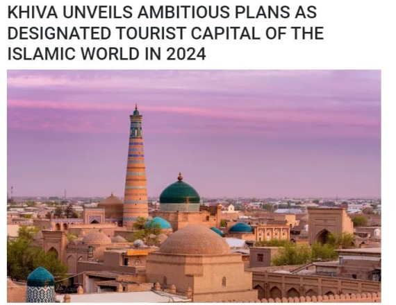 В статье отмечается, что стремясь продемонстрировать богатое архитектурное наследие и яркую культуру, город Хива в Узбекистане готовится стать туристической столицей исламского мира в 2024 году. «Соответствующее решение было принято ранее на заседании Совета министров Организации исламского сотрудничества (ОИС), прошедшем в городе Баку в 2022 году, - говорится в статье. - Правительство Узбекистана наметило целый цикл мероприятий высокого уровня, которые должны состояться в течение 2024 года, с целью продвижения потенциала паломнического, культурного и делового туризма».