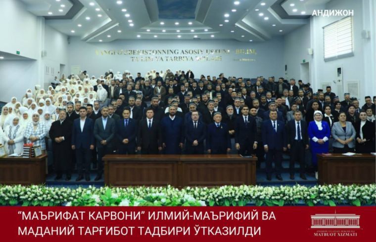 В Андижанском государственном университете под руководством главного имама региона Мирзамаксуда домлы Алимова с участием всех имам-хатибов, отиноев, паломников, активистов махалли и пропагандистов духовности состоялось научно-культурное мероприятие "Маърифат карвони" ("Караван просвещения").